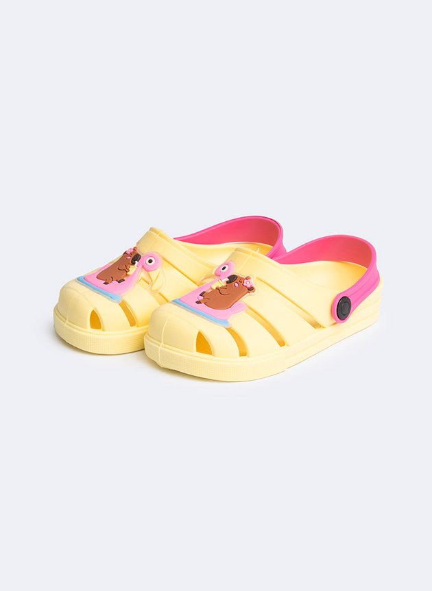 Babuche Infantil Menina Amarelo com Tira Rosa Capivara no Flamingo. Estilo e conforto para as pequenas que amam aventura!