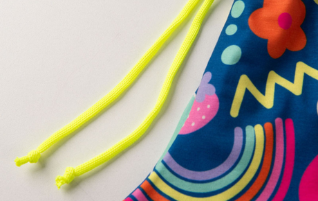 O shorts, no mesmo tecido, conta com cós rebatido e cadarço neon, garantindo ajuste prático e toque divertido ao visual. Um conjunto versátil para brincar com leveza e aproveitar o verão com muito estilo!