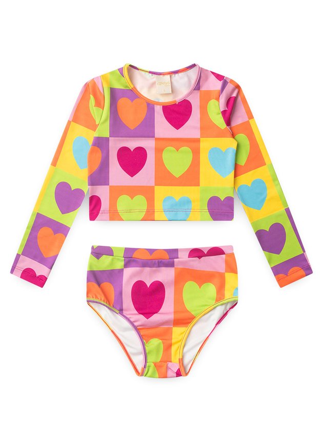 O Conjunto Biquíni Infantil Menina Corações é puro charme e conforto para os dias de sol!