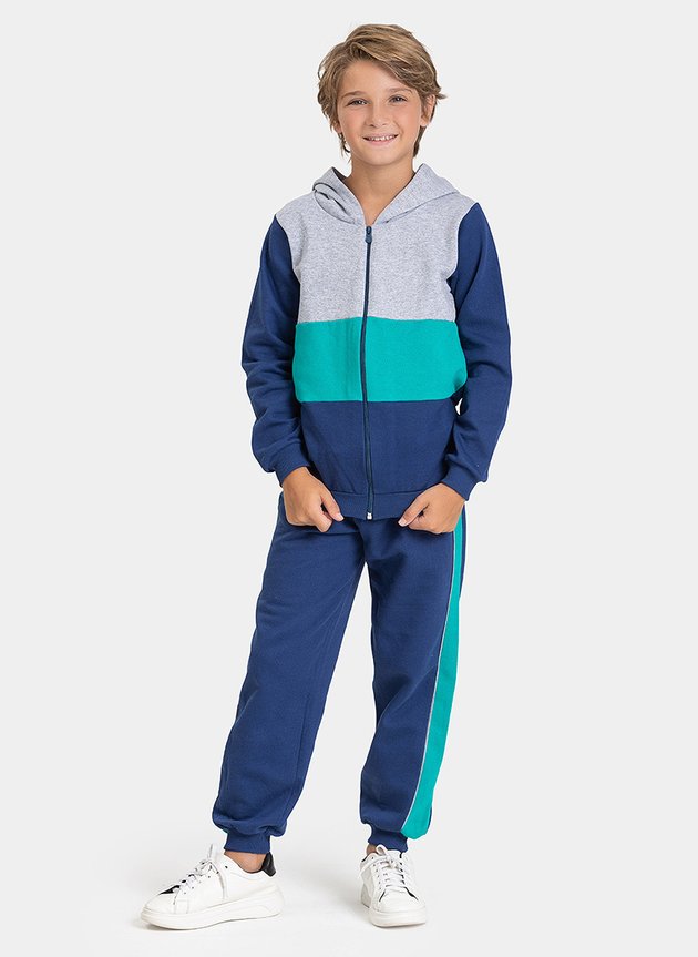 Garanta conforto e estilo nos dias frios com esse conjunto infantil menino composto por jaqueta e calça em moletom felpado.
