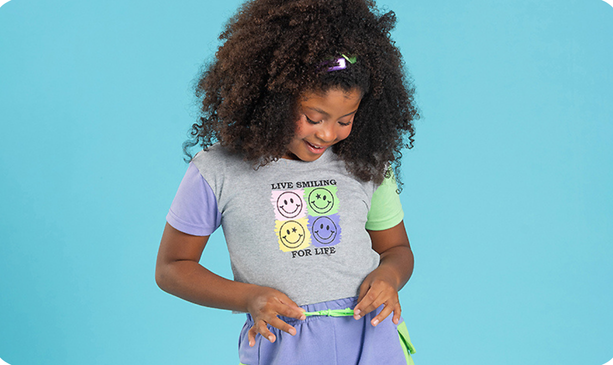 Feito inteiramente em 88% algodão 12% poliéster, este conjunto oferece conforto e frescor em cada detalhe. O cropped, na cor mescla, apresenta mangas nas cores lilás e verde, com uma estampa frontal que adiciona um toque de estilo e diversão ao visual.