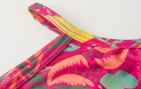 Com um visual leve e alegre, o cropped de alcinha na cor pink é confeccionado em poliplex com 96% poliéster e 4% elastano, trazendo estampa sublimada de folhagens que combina com a estação.