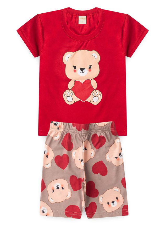 Garanta conforto e qualidade para sua criança com o Conjunto Verão Menina Blusa e Shorts Ciclista Ursinho Coração.