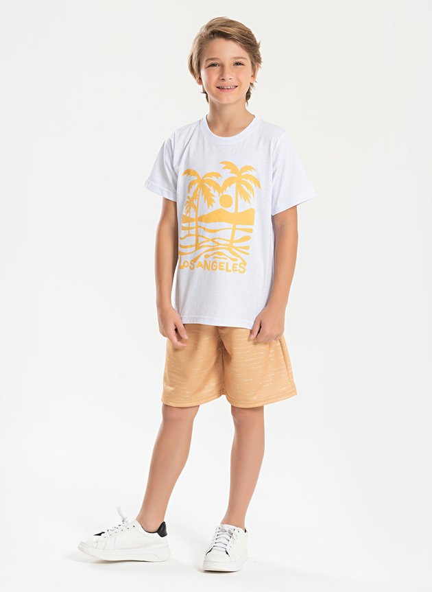 Garanta conforto e qualidade para sua criança com o Conjunto Verão Menino Camiseta e Bermuda com Cadarço Los Angeles.