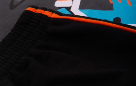 Complementando o conjunto, a bermuda é feita em moletom careca 100% algodão, com um recorte lateral na cor laranja que contrasta com o preto, proporcionando estilo e liberdade de movimento para o dia a dia do seu filho.