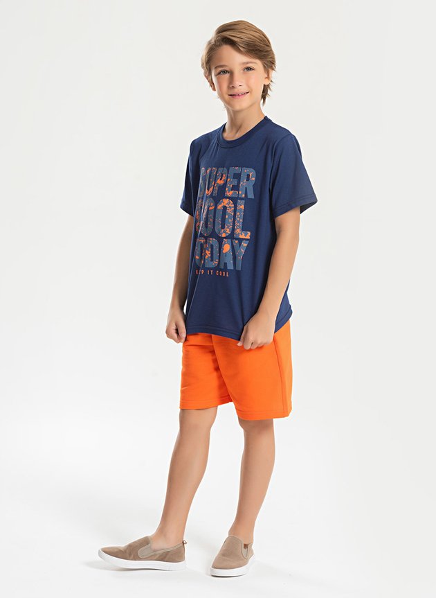 Garanta conforto e qualidade para sua criança com o Conjunto Verão Menino Camiseta e Bermuda Super Cool Today.