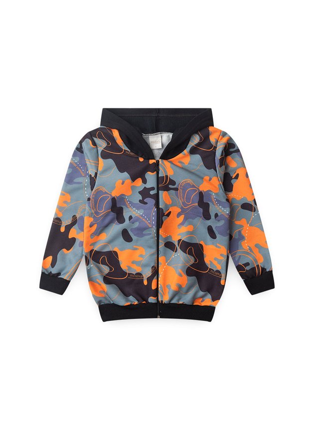 Confeccionada em moletom felpado 100% poliéster, esta jaqueta na cor cinza espacial apresenta uma estampa sublimada com padrão camuflado que adiciona um toque de aventura ao visual. Com capuz na cor preta para maior proteção contra o frio e punhos e barra em ribana que garantem um ajuste confortável e seguro, ela é perfeita para manter seu menino aquecido e elegante durante os dias de inverno.