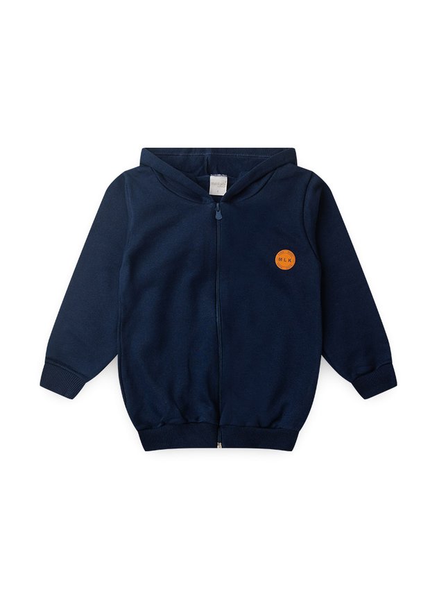 Esta jaqueta, confeccionada em moletom felpado 100% algodão, na clássica cor marinho, oferece proteção completa com seu capuz e praticidade com fechamento em zíper. Os detalhes em ribana nos punhos e na barra garantem um ajuste perfeito e conforto duradouro, tornando-a a escolha ideal para aquecer seu menino durante as aventuras de inverno.
