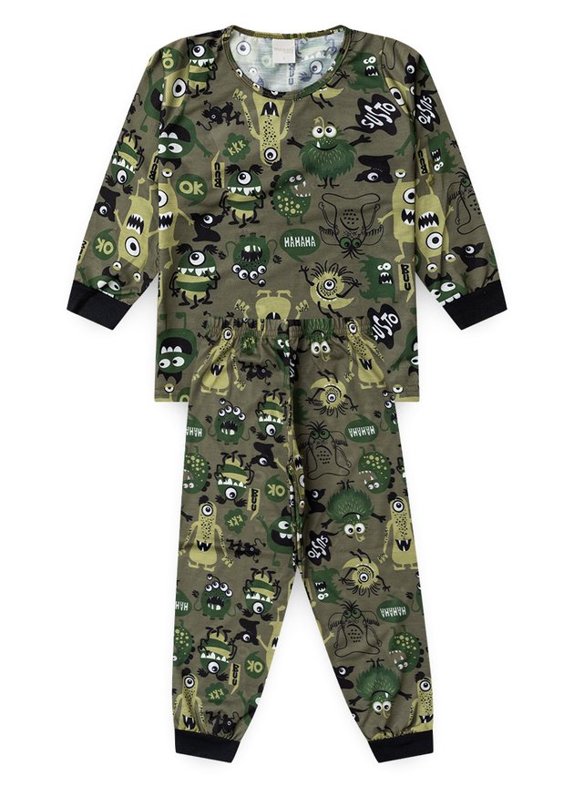 A blusa de manga longa, na cor verde, é confeccionada em malha fiada 100% poliéster, com estampa sublimada de monstrinhos que traz um toque divertido e cheio de personalidade. Os punhos em friso preto oferecem melhor ajuste e conforto. A calça, também verde, acompanha a proposta divertida com estampa sublimada combinando, confeccionada no mesmo tecido leve. O cós com elástico proporciona praticidade e liberdade nos movimentos, e os punhos na cor preta garantem um melhor caimento. Um conjunto ideal para garantir o soninho tranquilo com muito estilo.