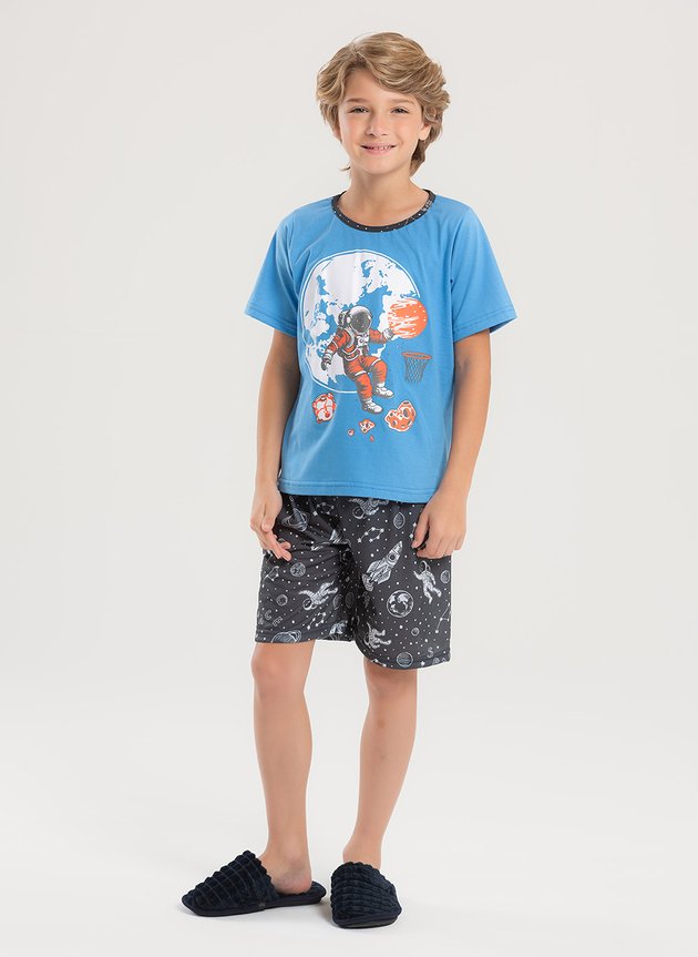 O Pijama Verão Menino Astronauta é perfeito para embalar os sonhos das crianças que amam o espaço.
