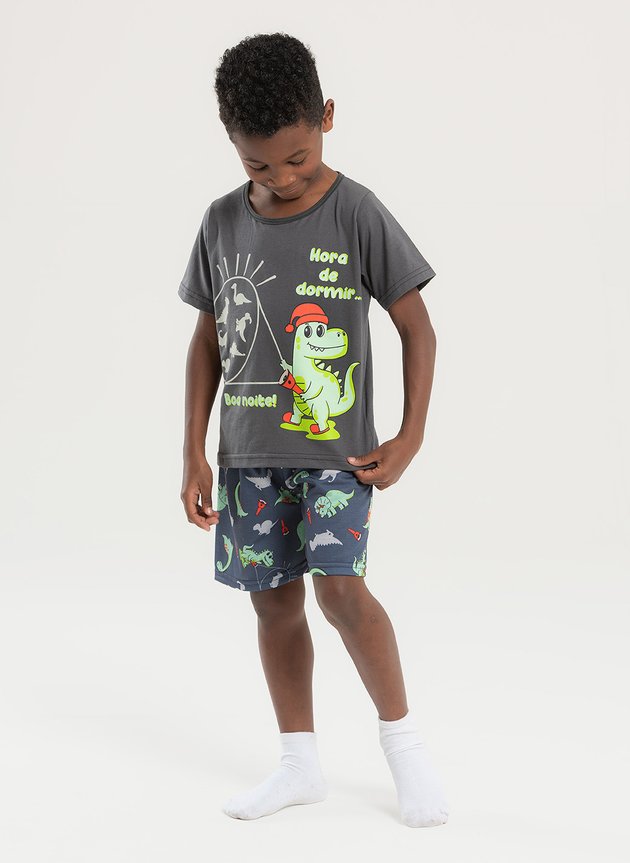 O Pijama Verão Menino Dino Dorminhoco é perfeito para garantir conforto e muita imaginação na hora de dormir.